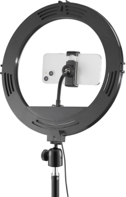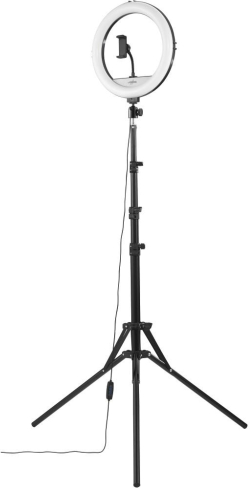 С 12" LED ринг лампа, 3 нива на цветна температура и 10 степени на яркост, лесно настройвате светлината според сцената – от топъл до неутрален и студен тон. Това помага за по-естествен вид на кожата, по-малко сенки и по-ясна картина при снимане или излъчване.