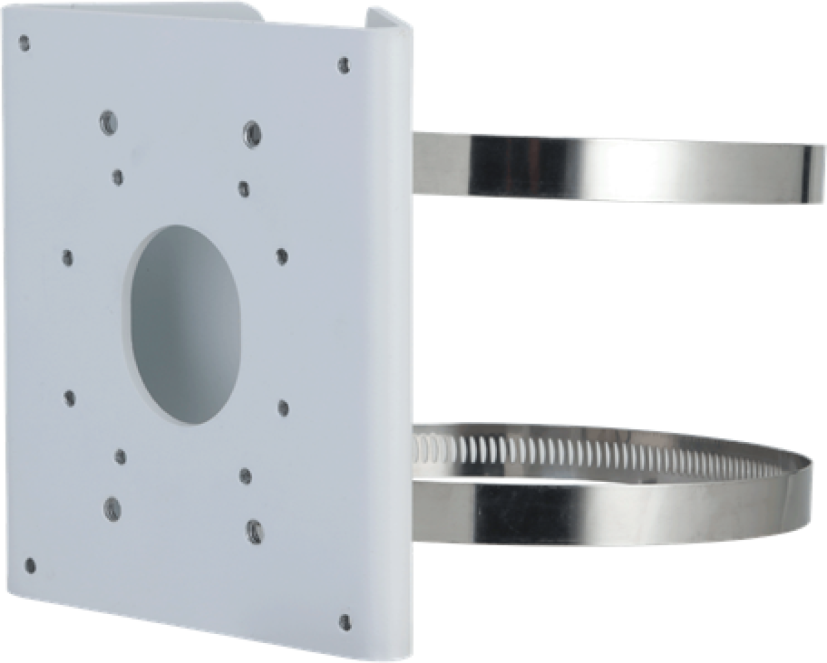 Стойка за стълб, PFA156 е оригинален монтажен аксесоар на Dahua за надеждно закрепване на съвместимо оборудване върху стълбове и колони. Подходяща е за външни и индустриални среди, където е важна стабилността на инсталацията.