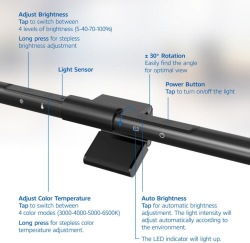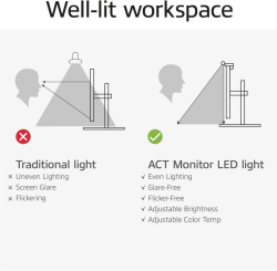 ACT LED лампа за монитор, сензорно управление, USB захранване е практично решение за комфортна работа пред екрана, когато светлината в помещението е недостатъчна. Асиметричният ѝ безотблясъчен дизайн осветява бюрото, без да създава отражения върху монитора.