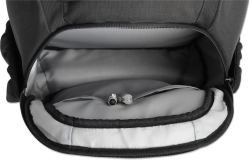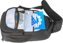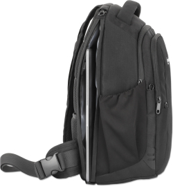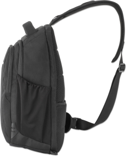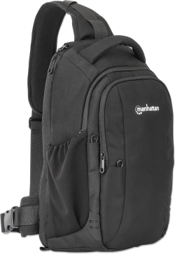 Раница с горно зареждане, с единична презрамка за лаптопи и таблети до 13,3", защитни кукички за закопчаване и скрит заден джоб, първокласна подплата, преден и множество вътрешни джобове, водоустойчива, черна