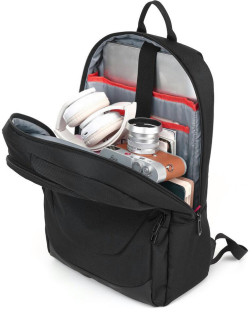 Раницата разполага с подплатено отделение за лаптоп до 15.6" и отделно подплатено място за таблет до 12.7", което помага да пренасяте техниката си по-сигурно. Трите основни секции улесняват подреждането на зарядно, мишка, кабели и документи, а страничният държач за бутилка е удобен за динамичното ежедневие.