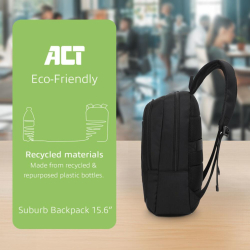 ACT Suburb раница за 15.6 лаптоп от рециклирани пластмасови бутилки е практично решение за ежедневие, работа и пътуване, съчетаващо ниско тегло и отлична организация. Изработена е от водоотблъскващ rPET плат и предлага обем 18.5 L.