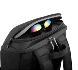 Dell Gaming Backpack 17 GM1720PM е висококачествен геймърски раница, проектирана да побира лаптопи с размери до 17 инча, включително MacBook и стандартни ноутбуци. Изработена от здрав плат, раницата осигурява защита от вода, надрасквания, прах и ежедневни удари, като същевременно предлага удобство и стилен черен дизайн. С ергономични подплатени презрамки, мрежеста подплата на гърба и удобна дръжка за носене, тя гарантира комфорт при продължително носене. Вграденият отдел за лаптоп, джоб за вода и организаторски джобове позволяват лесно съхранение на аксесоари и лични вещи, докато рефлективните елементи подобряват безопасността при движение вечер.
