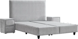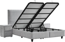 Тапицирана спалня с матрак COMO 160 x 200 - сребърен AN разполага с ракла за съхранение и амортисьори за повдигане, които улесняват достъпа и организирането на спално бельо и вещи. Подматрачната система е с подсилена метална рамка за надеждна стабилност, а тапицираните елементи придават завършен вид, подходящ за модерна двойна спалня 160x200.