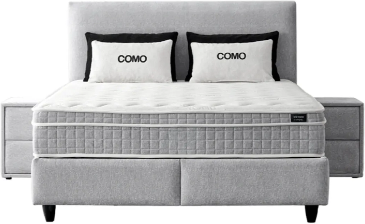 Тапицирана спалня с матрак COMO 160 x 200 - сребърен AN е стилно и практично решение за комфортна спалня, съчетаващо стабилна конструкция, удобен матрак и функционално пространство за съхранение.
