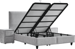 За допълнително удобство Тапицирана спалня с матрак COMO 180 x 200 - сребърен AN разполага с ракла за съхранение и амортисьор за повдигане, които улесняват достъпа и помагат да организирате спално бельо и вещи. Подсилената метална подматрачна рамка допринася за стабилност и дълготрайна употреба, а сребристият тапициран дизайн се вписва лесно в различни интериори като легло с ракла и спален комплект с матрак.