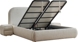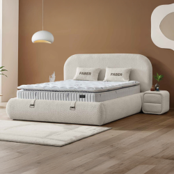 Подсилената метална подматрачна рамка и амортисьорният механизъм улесняват ежедневната употреба, а раклата за съхранение помага да организирате завивки и спално бельо. Тапицирана спалня с матрак FABER 140 х 200 - лате 06 е отличен избор за тапицирано легло 140x200, легло с ракла и спалня с включен матрак в модерна визия.