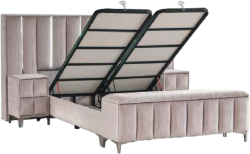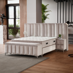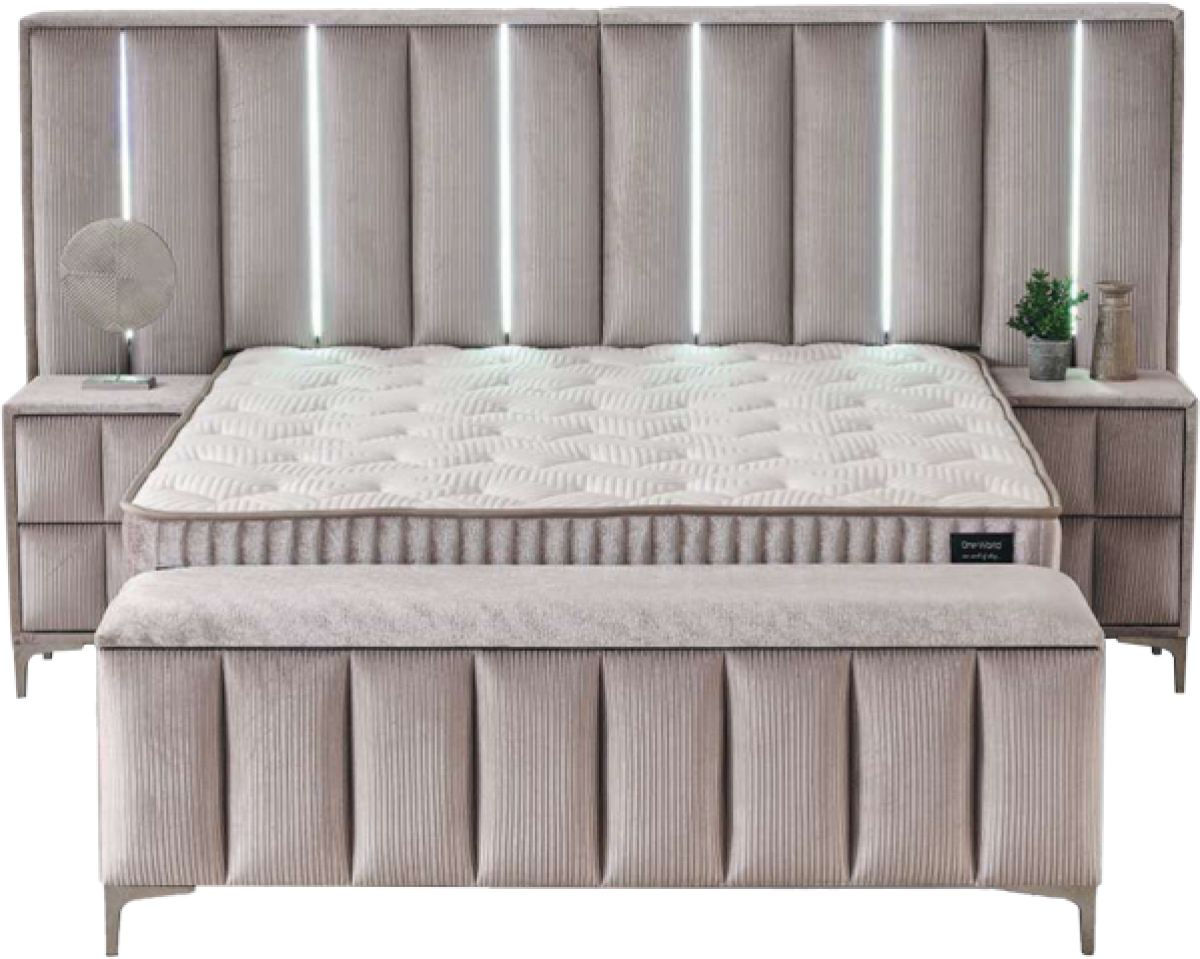 Тапицирана спалня с матрак MOONLIGHT 140 x 200 - бежов 03 е практично и стилно решение за модерна спалня, съчетаващо комфортен матрак и функционални екстри в един комплект.