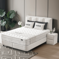 Тапицирана спалня с матрак PAROS 180 х 200 - крем AN е елегантно и практично решение за модерната спалня, съчетаващо комфортен матрак и стабилна конструкция. Кремавият нюанс се вписва лесно в различни интериорни стилове и създава усещане за уют.