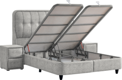 Стабилната подматрачна основа с подсилена метална рамка и удобната ракла за съхранение правят леглото отличен избор за оптимално използване на пространството. Повдигането е улеснено благодарение на амортисьор за повдигане, което позволява бърз достъп до мястото за съхранение.