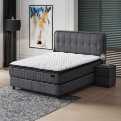 Моделът предлага включен матрак с покет пружини и твърдост: твърд, което подпомага стабилната опора на тялото и спокойния сън. Комбинацията от вложка от вълна и памук и пухена подложка допринася за приятно усещане и добра адаптация към натоварването — отличен избор за тапицирана спалня 160x200 с фокус върху комфорта.