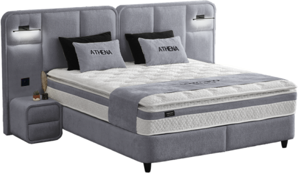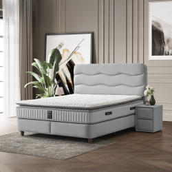 Тапицирана спалня с матрак WAVE 180 x 200 - светлосив 25 е практично и елегантно решение за модерна спалня, съчетаващо комфортен матрак и функционално пространство за съхранение. Моделът е подходящ за търсещите удобство, стабилност и стил в едно.