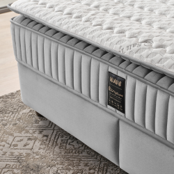Конструкцията с подсилена метална подматрачна рамка осигурява надеждна опора, а включеният матрак с покет пружини допринася за по-добро разпределение на тежестта и комфорт при сън. Средната твърдост е балансиран избор за ежедневна употреба и предпочитана от много потребители при избор на спалня 180x200.