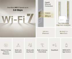 Mercusys ME25BE BE3600, Wi-Fi 7, 3600 Mbps, двубандов, EasyMesh, бял