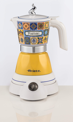 Електрическа Кафеварка Ariete 1358/1P Positano Moka Aroma разполага с безжична 360° основа за удобно поставяне и вдигане от всякакъв ъгъл. Подходяща е за любителите на електрическа кафеварка тип мока и за всеки, който търси надеждна кафе машина за смляно кафе в стилна бяло-жълта визия.