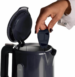 С мощност 2200 W и вместимост 1.7 L, моделът е подходящ за ежедневна употреба и приготвяне на вода за чай, кафе или инстантни напитки. Безкабелният дизайн улеснява поставянето и вдигането от основата, а индикаторът за нивото на водата помага да наливате точното количество.