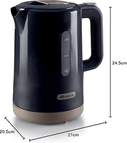 Кана Ariete 2846/00 е в елегантен черен цвят и с пластмасов държач, което я прави лесна за комбиниране с различни кухненски уреди. Отличен избор за всеки, който търси надеждна кана за вода и удобен електрически чайник за ежедневието.