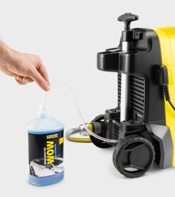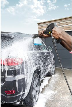 Специализиран комплект за автомобили – Включва пеногенератор с вместимост 0.3 l, въртяща се четка за миене и 1 l шампоан за автомобили 3 в 1, които улесняват почистването и придават дълготраен блясък на автомобила.