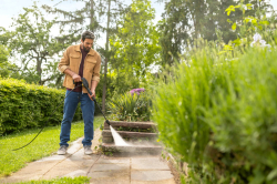 Мощно и ефективно почистване – С налягане от 20 до 130 бара, дебит 420 l/h и ефективност за единица площ от 30 m²/h, водоструйката е подходяща за редовно почистване на умерени замърсявания върху автомобили, велосипеди, мотоциклети, градински мебели, инструменти, огради и повърхности около дома.