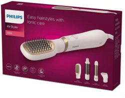 Уредът се предлага с практични аксесоари – 30 мм кръгла четка с прибиращи се зъбци, плоска четка за изправяне и концентратор за прецизно оформяне. Функцията за студен въздух помага за фиксиране на прическата, а дългият 1.8-метров кабел с въртящ се механизъм осигурява удобство при работа. Компактният розов дизайн и халката за окачване правят Philips BHA310/00 стилен и практичен избор за ежедневна употреба. С 24-месечна гаранция това е надеждно решение за всеки, който иска професионални резултати у дома.