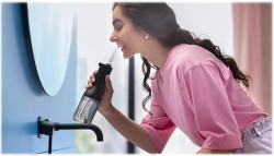 Оралният иригатор PHILIPS Power Flosser 3000 е оборудван с лесен за пълнене резервоар с капацитет 250 ml, който осигурява комфортно и непрекъснато почистване. В комплекта са включени две приставки, подходящи за цялостна грижа за устната хигиена. Уредът е специално проектиран за подобряване здравето на венците и поддържане на свежо усещане в устата. Стилният черен цвят допълва модерния му дизайн и го прави подходящ за всяка баня.