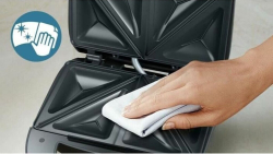 Проектиран да работи в диапазон на напрежение от 220 - 240 V, този уред за сандвичи е подходящ за различни електрически системи.
