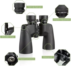 Водоустойчив. Призма на Поро. Увеличение: 7x. Диаметър на лещата на обектива: 50 mm