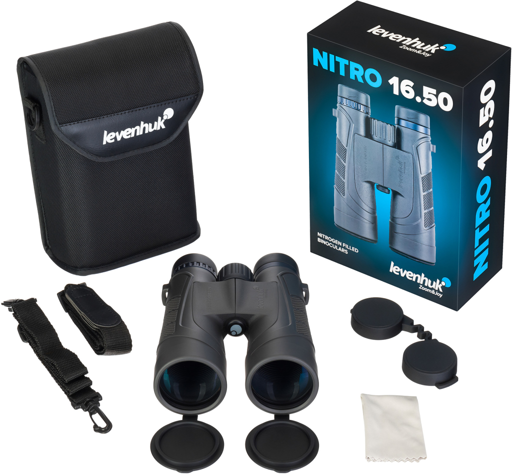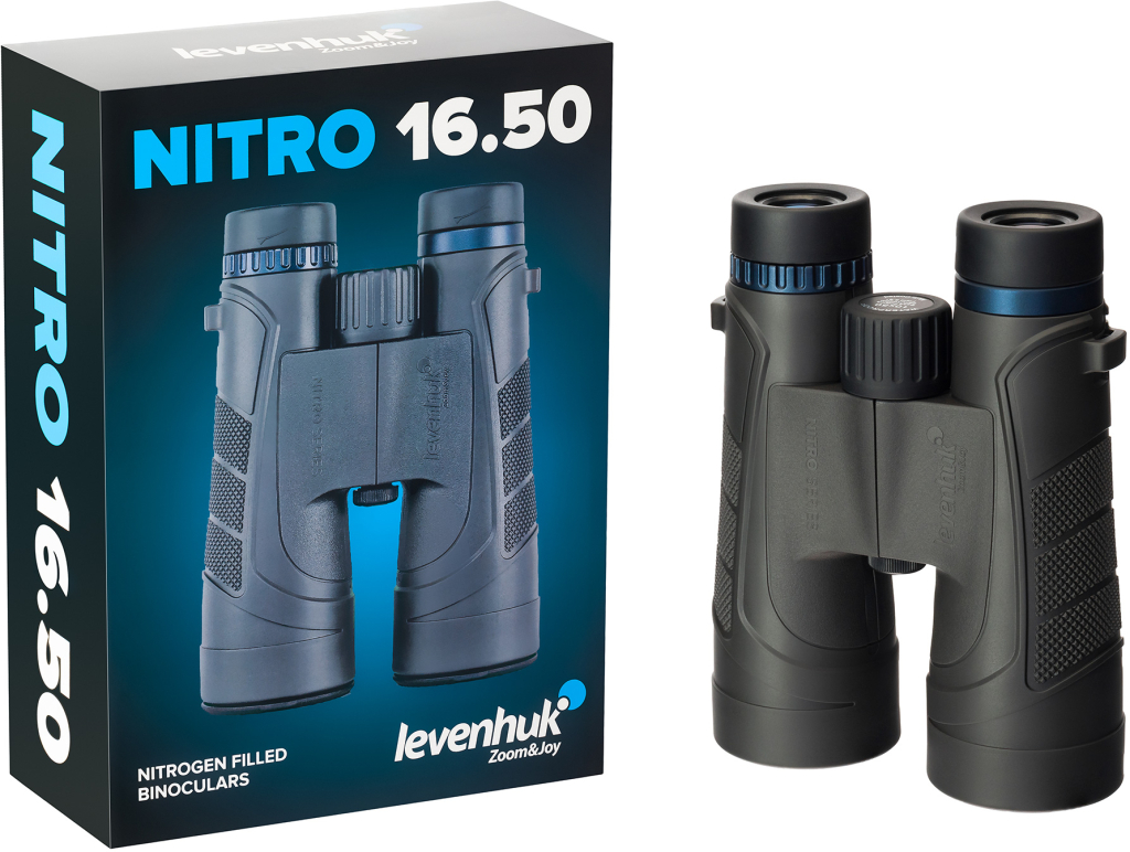 Мощният полеви бинокъл Levenhuk Nitro 16x50 с увеличение 16х осигурява отчетливи, ясни и детайлни изображения на значително разстояние при всякакви метеорологични условия благодарение на апертурата и оптичните елементи с цялостно многослойно покритие, изработени от оптично стъкло BaK-4.