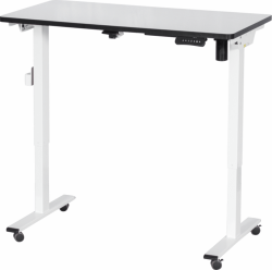 Ергономично регулируемо бюро Carmen CR-114 W - бяло разполага с панел за управление с дисплей, сензор против сблъсък и аларма за допълнителна безопасност и удобство. Колелцата със спирачки улесняват преместването и фиксирането, а възможността за завъртане на плота до 90° добавя гъвкавост при различни работни сценарии.