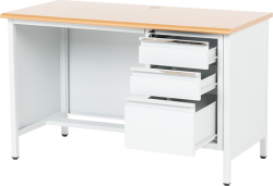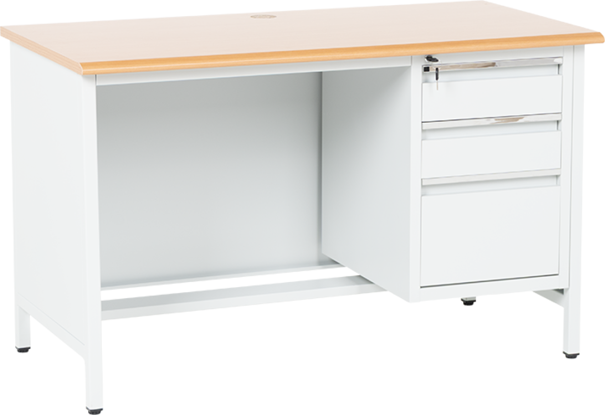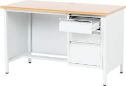 За по-добра организация Метално бюро Carmen CR-1314 K - сиво / бук разполага с 3 чекмеджета, разположени вдясно, както и заключване за по-сигурно съхранение на документи и лични вещи. Предвиденият отвор за кабели улеснява подредбата и поддържа работната зона чиста — отличен избор за офис бюро, работна маса или метално офис обзавеждане.