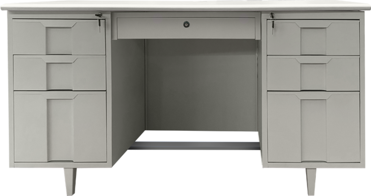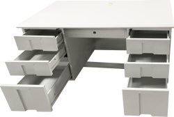 Със 7 чекмеджета и заключване, Метално бюро Carmen CR-1319 L - сиво помага да поддържате ред и сигурност на важни документи и принадлежности. Вграденият отвор за кабели улеснява подредбата при работа с компютър и периферия, което го прави отличен избор за офис бюро, работно бюро и метално офис обзавеждане.