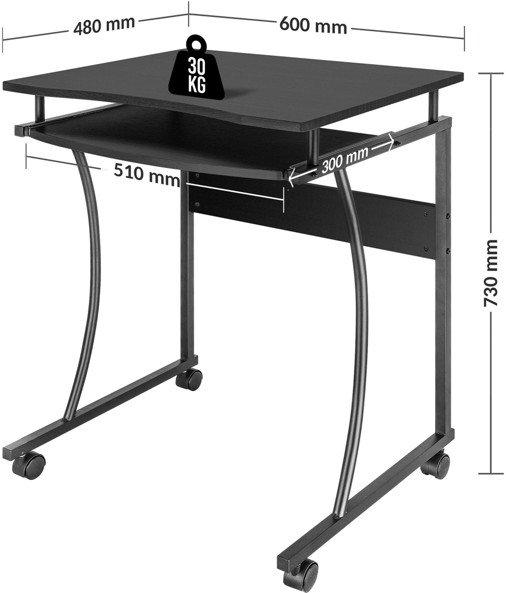 Открийте удобството и функционалността на мобилното бюро Manhattan 42513 в елегантен черен цвят. Създадено за съвременния домашен офис и малки пространства, този компактен офис помощник предоставя оптимално работно място, като същевременно пести място във всяка стая. Благодарение на плъзгащата се поставка за клавиатура и мишка, работният плот остава свободен за документи, лаптоп или други необходими аксесоари. Четирите колелца, от които две със спирачки, осигуряват пълна мобилност и стабилност при нужда, а здравата стоманена конструкция и MDF плотове гарантират дълготрайност и сигурност.