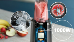 - Оборудван с 800 W мотор и технология ProBlend Plus, този блендер осигурява гладки резултати за всяка съставка, предлагайки ефективност и мощност в процеса на приготвяне на храна.