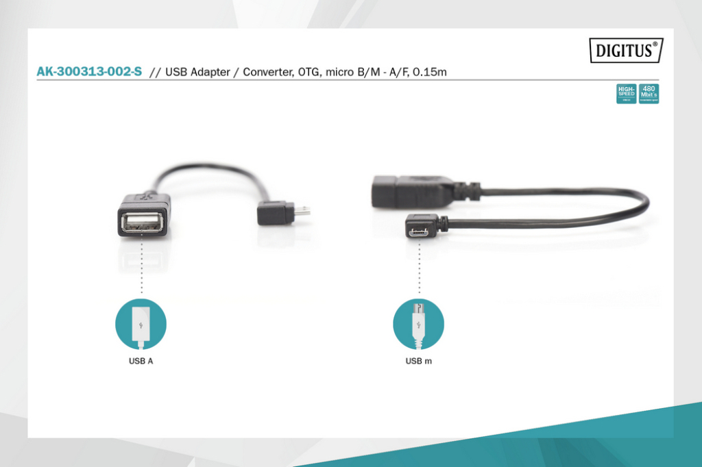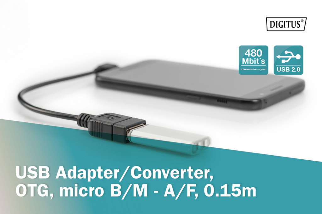 DIGITUS AK-300313-002-S :: USB кабел, OTG, micro B-M - A-F, right angled