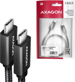 Cable USB3 C-C, M-M, 1m, 100W, AXAGON BUCM32-CM10AB е премиум USB-C към USB-C кабел за изключително бърз пренос на данни, видео и надеждно зареждане. Подходящ е за лаптопи, телефони, таблети, докинг станции, монитори и външни SSD устройства.