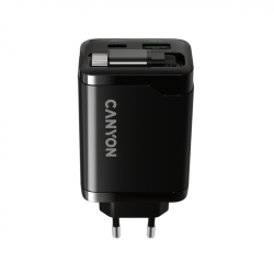 CANYON OnCharge 65RC, Вграден USB-C кабел 65W, USB Type-A, Power Delivery, Quick Charge, EU, Черен