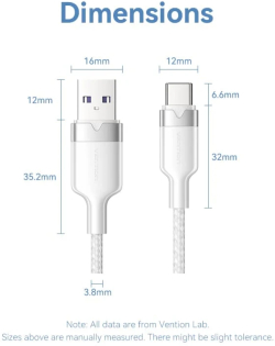 Vention Кабел USB 2.0 A Male to C Male 1.0M Black 6A Fast Charge - CTOBF