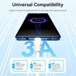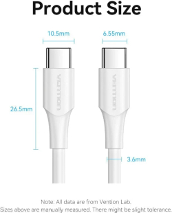 Vention Кабел USB 2.0 Type-C to Type-C - 1M White 3A Fast Charge - TAXWF