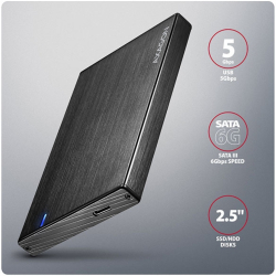 AXAGON EE25-XA6C, USB-C към SATA 2.5", 5Gbps, UASP, алуминиев, черен