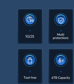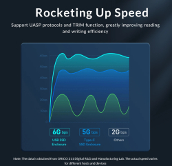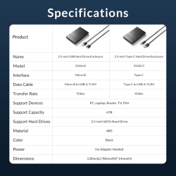 Изработена в стилен черен дизайн, кутията е създадена с мисъл за вашето удобство и защита на устройството. Шоковото уплътнение предпазва вашите данни, докато компактните размери и лекотата от само 0.100 кг я правят изключително портативна. С максимален капацитет от 6TB, вие ще разполагате с достатъчно място за съхранение на всичките си важни документи, снимки и видео файлове.
