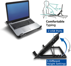 С пет различни позиции на височина, ACT AC8110 предоставя ергономична настройка за всяко работно пространство и ви позволява да настроите ъгъла според вашите нужди. Вградените два USB 2.0 порта улесняват свързването и зареждането на допълнителни устройства като мишка, клавиатура или външен диск. Захранването на вентилатора се осигурява директно от USB порта на лаптопа, а бутонът ON/OFF предоставя пълен контрол по всяко време.