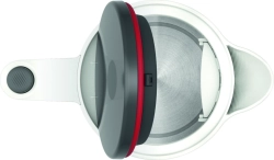 За по-чиста вода и по-добър вкус, каната разполага с филтър за варовик, който се почиства лесно. Ергономичното отваряне на капака с натискане на бутон и тройната функция за безопасност (автоматично изключване, защита от прегряване и изключване при повдигане) правят този електрически чайник надежден избор за всяка кухня.