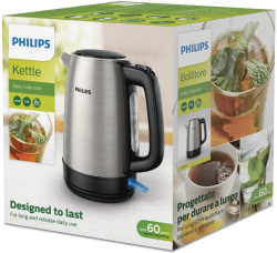 PHILIPS HD9350-91 Electric kettle Philips HD9350-90 1.7L inox е надеждна електрическа кана от серията Daily Collection, създадена за бързо и удобно кипване на вода у дома или в офиса. Неръждаемият корпус придава стилен вид и улеснява ежедневната употреба.