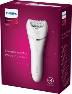 | Име на продукта: | PHILIPS Епилатор серия 8000 използване на мокро и сухо за крака и тяло + 3 принадлежности |