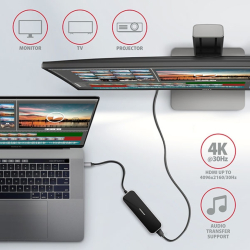 Елегантният алуминиев корпус осигурява здравина и по-добро охлаждане, а фиксираният кабел (20 cm) улеснява подреденото свързване. AXAGON HMC-6H4A е отличен избор за докинг станция USB-C в движение, включително за MacBook Pro и устройства с Thunderbolt 3.