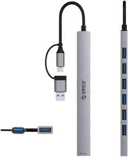 ORICO YSA2-U3-GY, 6x USB 2.0, 1x USB Type-C, 1x USB 3.0, до 5 Gbps, 0.16 м кабел, алуминиев, Сив