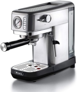 Ariete 1381-10 Slim Metal, 1300 W, ръчна, за смляно и дози, манометър, 2 чаши, 1.1 л резервоар, сребърен