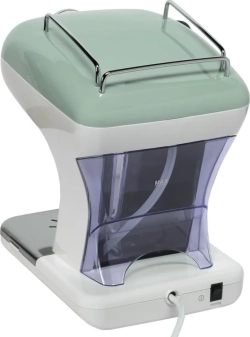 Машината приготвя до 2 чаши и е подходяща за сервиране директно в чаша, което я прави удобна за сутрешното кафе или за споделяне. Зеленият цвят добавя свеж акцент към кухнята, а форматът ѝ я позиционира като отлична кафемашина за еспресо за компактни пространства.