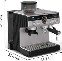 Ръчната машина за еспресо с мелачка за перфектно приготвено еспресо и пълен контрол. Насладете се на еспресо изживяване като никое друго с Krups Precision+. Вградената мелница се съчетава с интуитивен интерфейс, за да предложи пълен контрол и еспресо, което е изпълнено с изискан вкус и аромат. Проектирана за любителите на лате, професионалната дюза за пара ви позволява да изследвате света на лате изкуството, докато станцията за тампиране с контейнер за събиране на утайката от кафе предлага най-доброто бариста изживяване - с всичко необходимо за създаване на вашата авторска чаша.