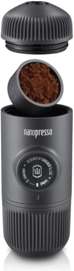 Практичният черен дизайн и компактните размери правят Wacaco Nanopresso + NS Adapter отличен избор за любителите на преносима еспресо машина, които търсят надеждна кафемашина за капсули и бърза подготовка на напитката.